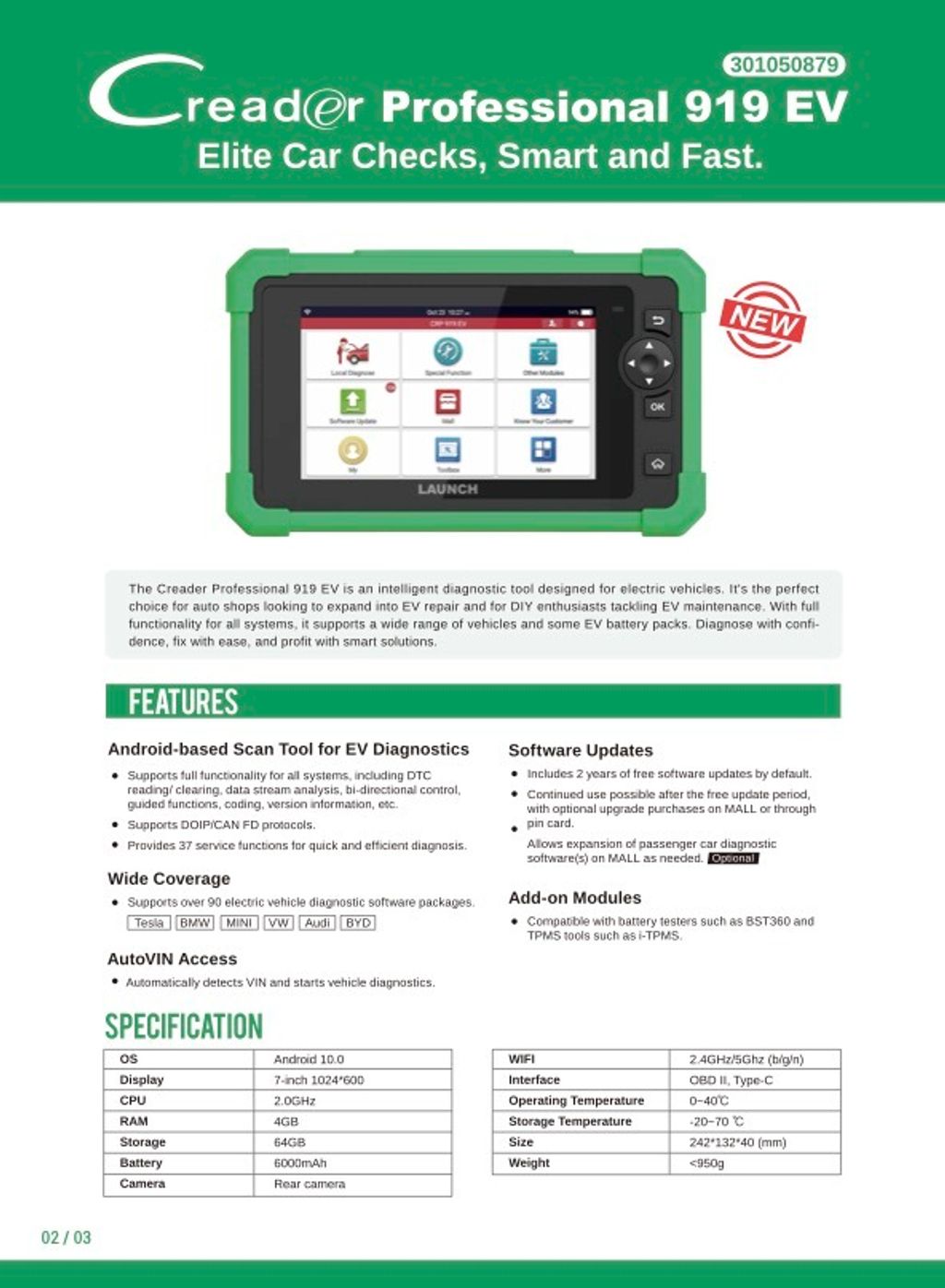 LAUNCH® | Creader Professional 919 EV
