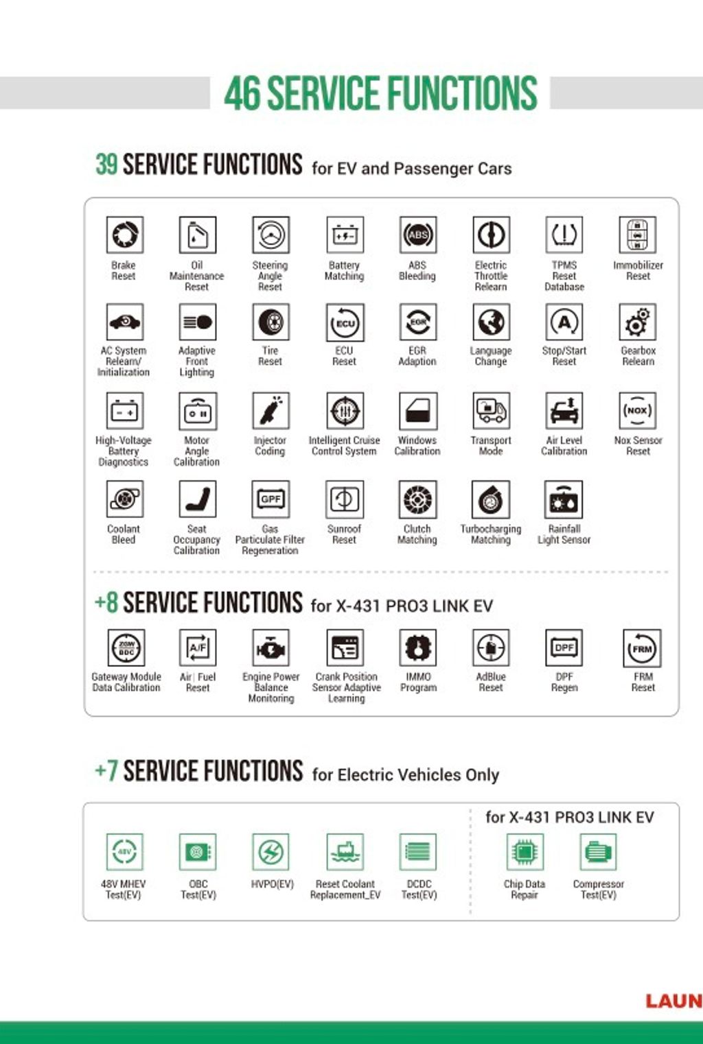 - Provides 37 service functions for quick and efficient diagnosis.