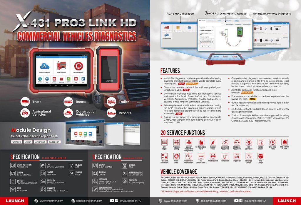 Launch X-431 PRO 3 LINK HD V2.0 Diagnostic Scan Tool With Solid Hardware And Excellent Software Service. With The Smartlink C V2.0, It Is Designed For Commercial Vehicles Repairing & Diagnostics| Emirates Keys