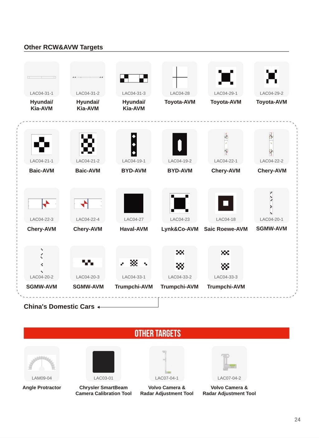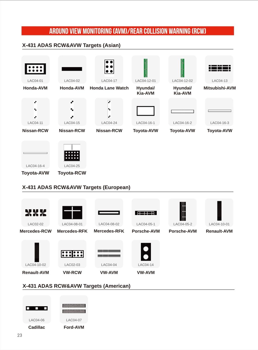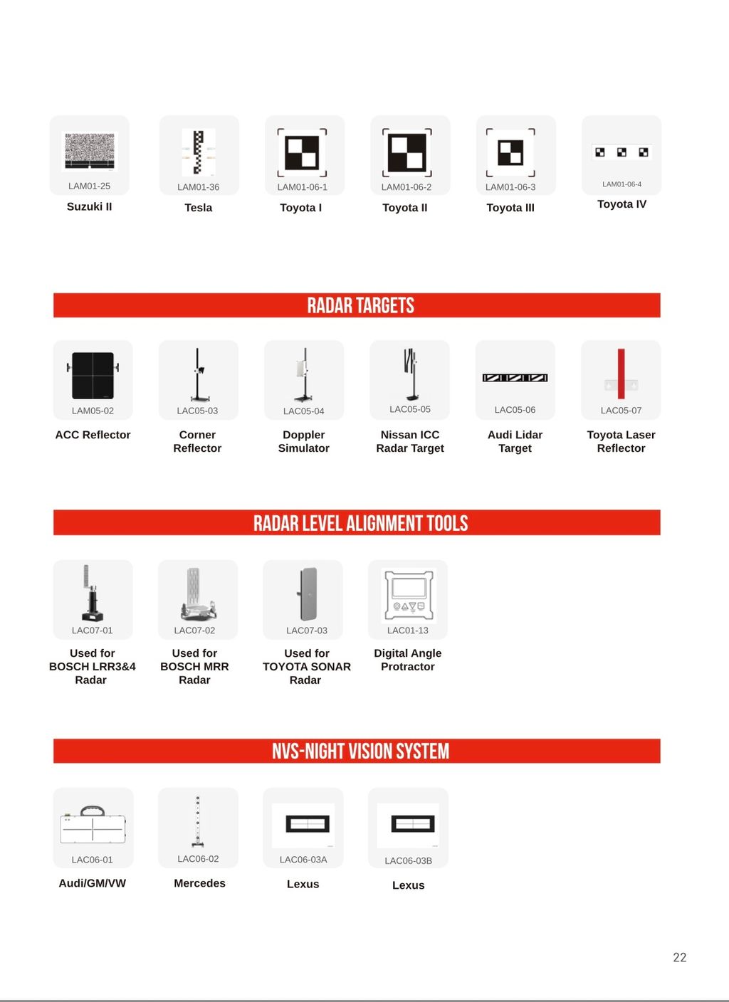 - ADAS Calibration Targets (as per catalogue reference)